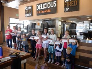During the field trip, we will split the class up into two groups. The first group will get a tour of the kitchen, learn how we prep some of our ingredients, get to play with some dough, help us make some bread, and learn to be a cashier. While the first group is in the kitchen, the second group will be given some crayons and a color page with which they can create their own sandwich. Once the first group is done, we will have them switch places! When everyone is done, they will all get two pieces of cheese pizza. Finally, we will hand out awards certificates to every student that is good for one free meal.