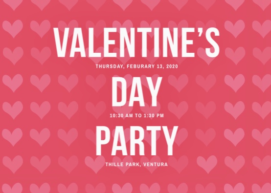 2020 Valentine’s Day Party….February 13th….10:30am-1:30pm….Thille Park